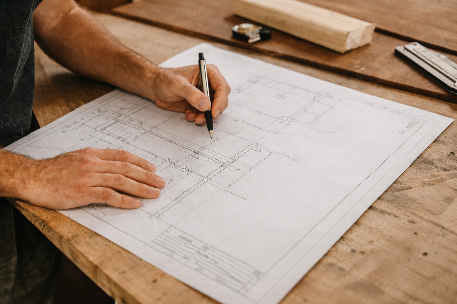 The design is refined through drawings and direct conversation — working through dimensions, materials, and finishes until the piece is right.